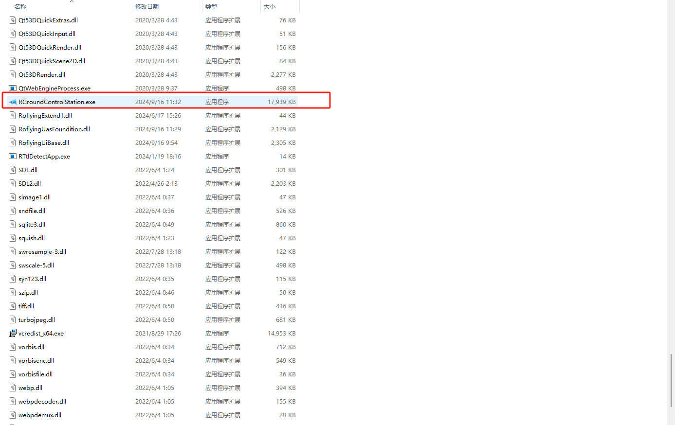 第二步:找到解压文件里的RGroundControlStation.exe文件,双击打开
