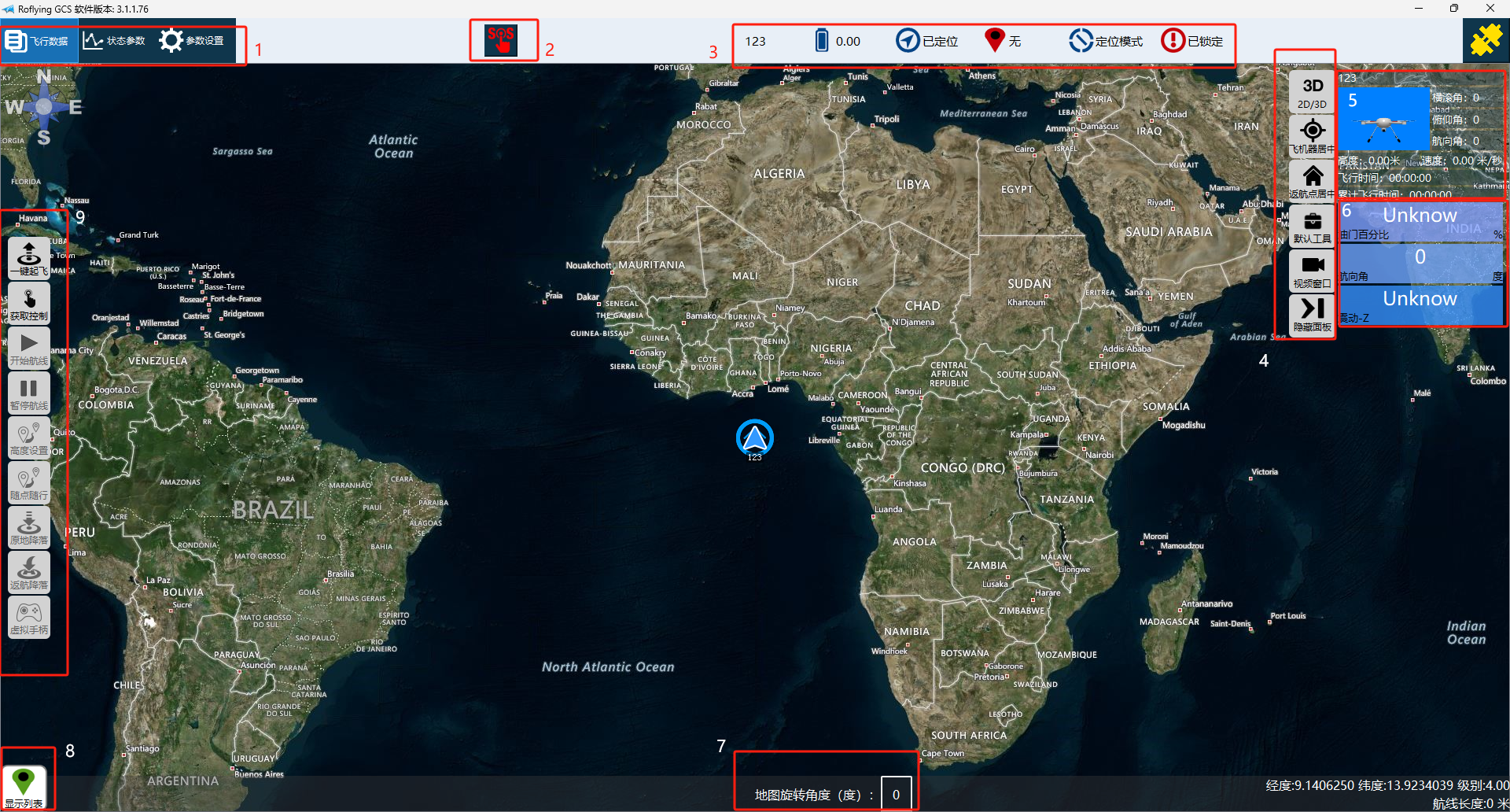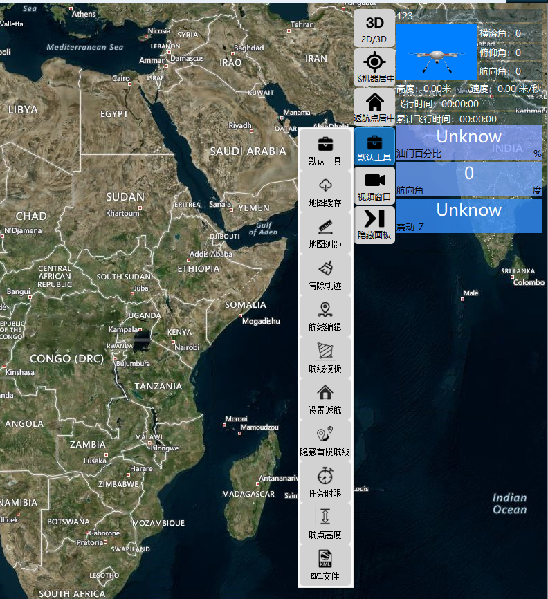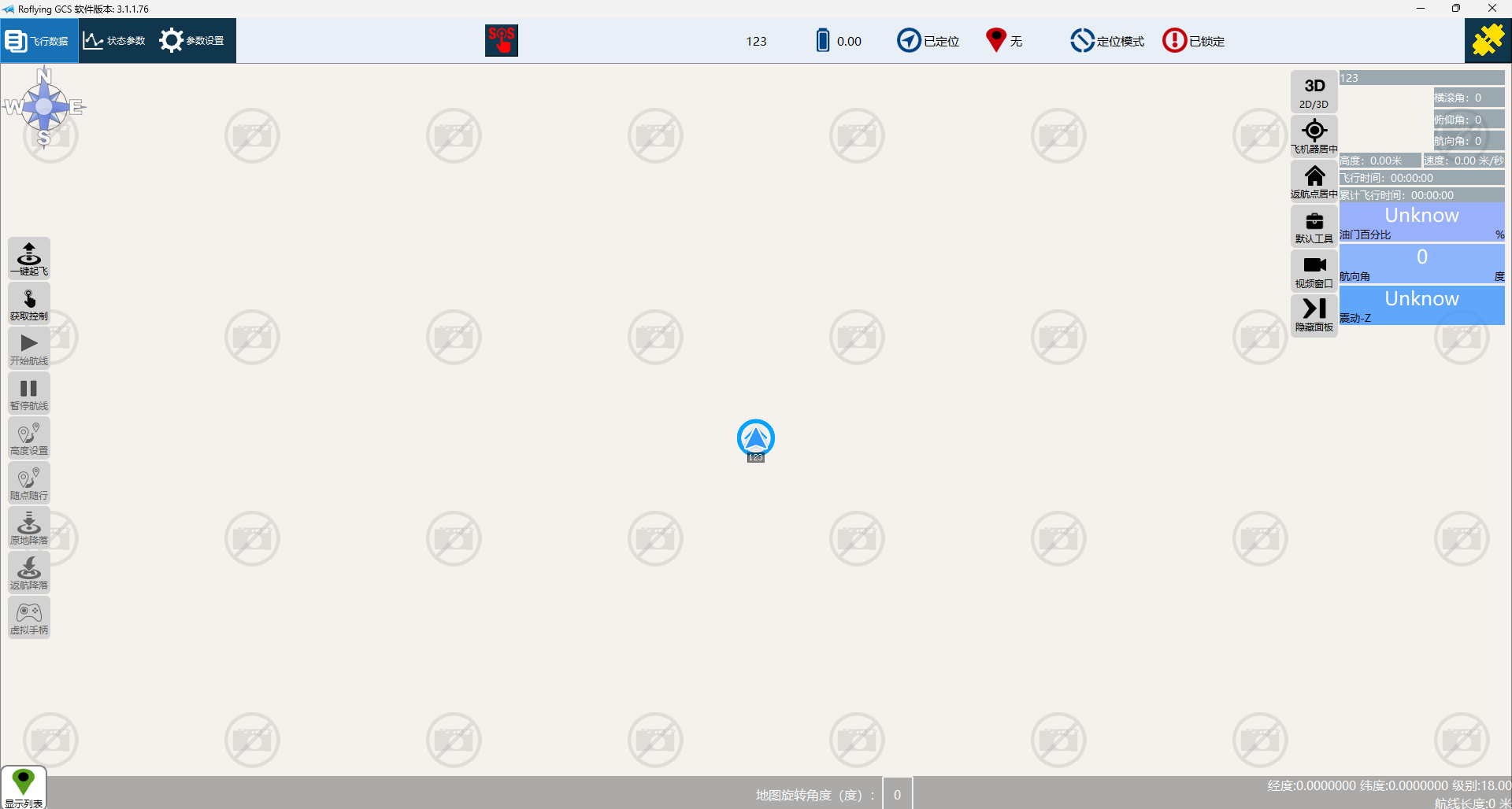 该页面是用于航线规划,地面站控制,以及基本飞行器实时信息的查看的,刚登陆进去是未连接任何设备的状态,因此没有显示这些工具以及信息
