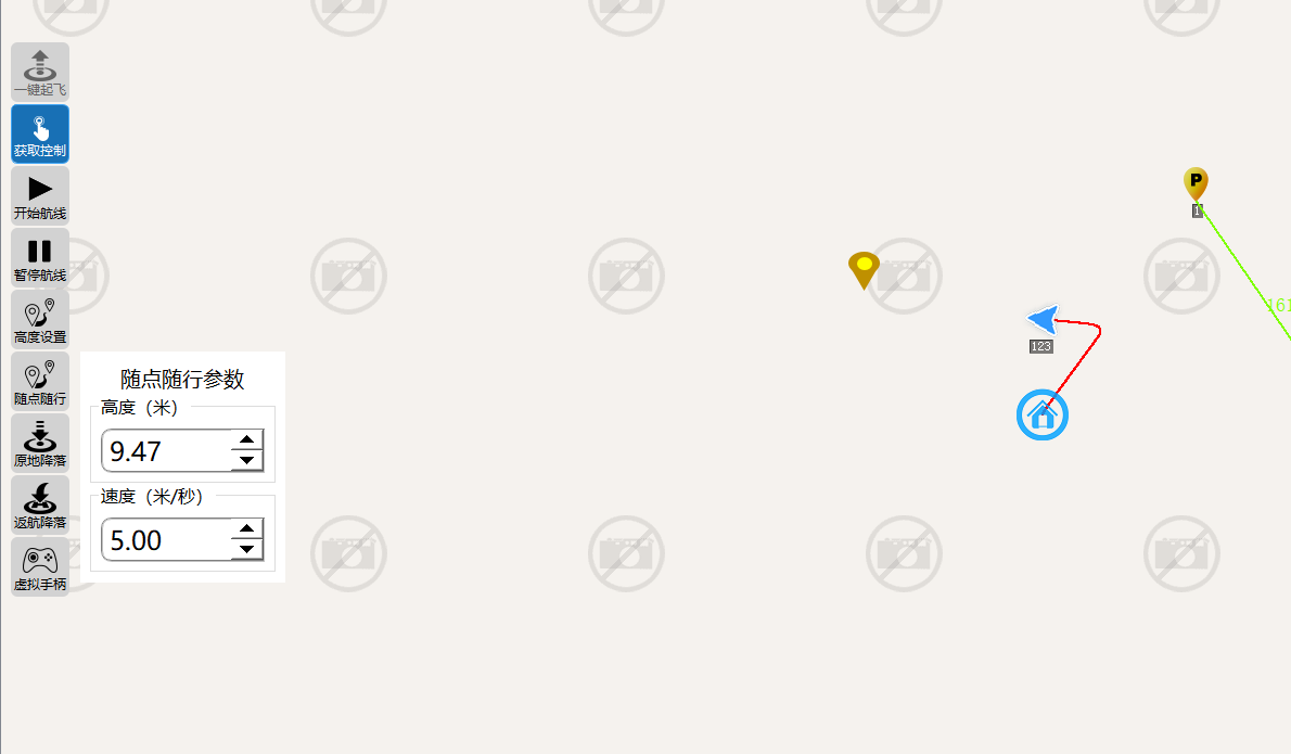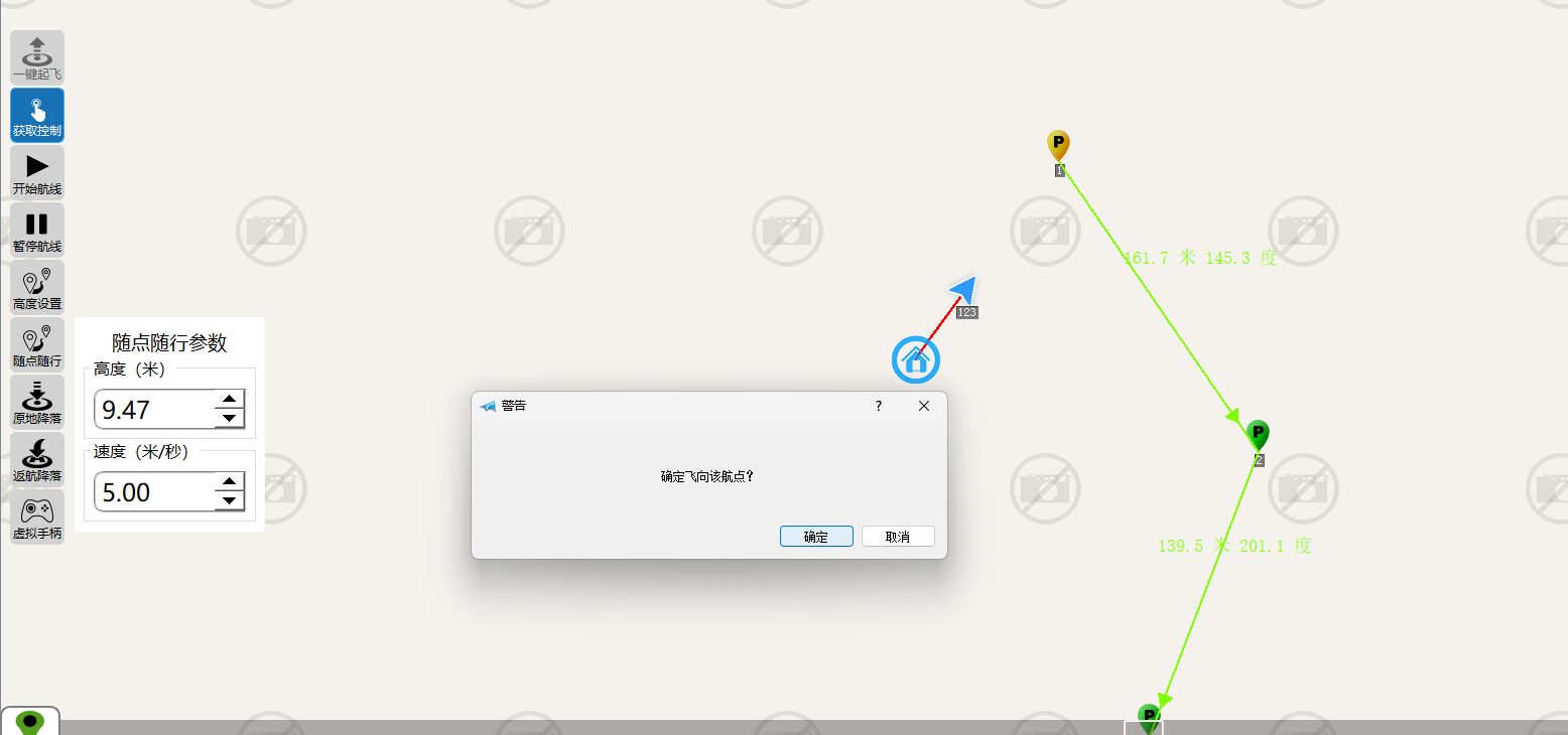 点击后,鼠标点击地图的任意位置,飞行器会以设定的高度和速度飞向该位置