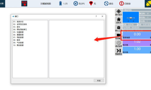 点击右边蓝色的快速检查窗口中的任意一个,即会弹出项目窗口,在项目窗口中可自行选择需要监视的飞行器信息即可。例如下图选择的项目为“全球定位系统”中的“距家角度”