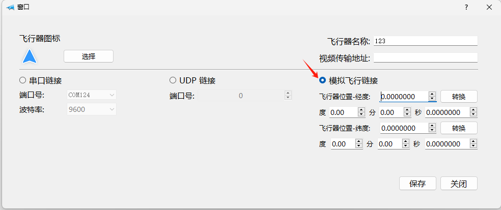 连接时,选择模拟飞行链接,可以输入自己所在地区的经纬度,进去之后飞行器图标会锁定到该经纬度所在位置