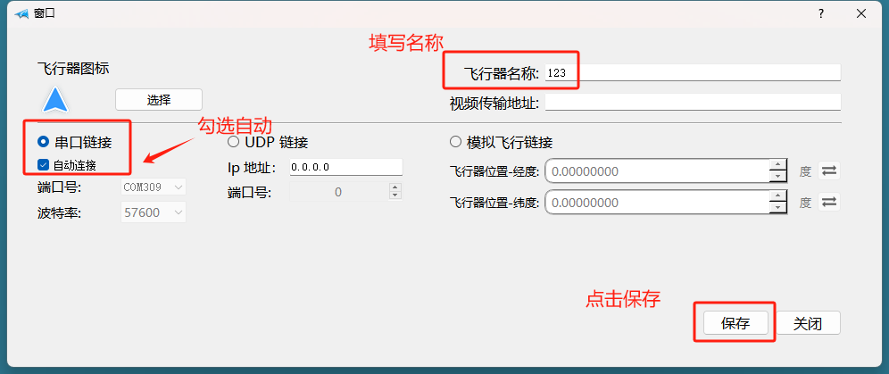 汉鲲超视距地面站提供模拟仿真连接的功能,具体操作如下