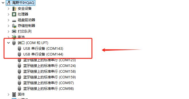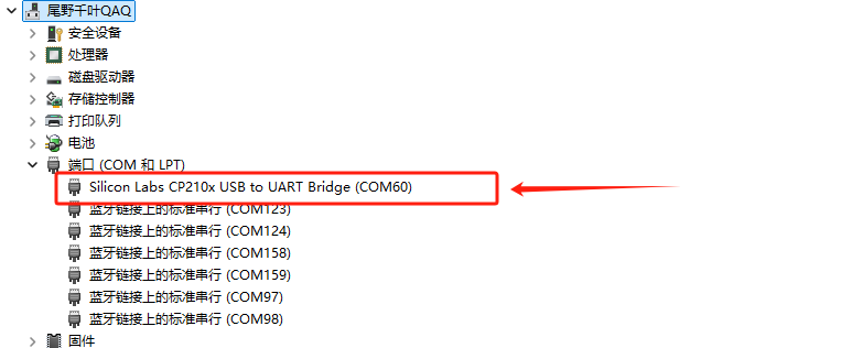 数传连接的时候,会显示“CP210XUSB to UART Bridge(comxxx)这里的 comxxx 就是串口号