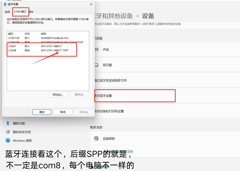 会看到下方显示“comx 传出 SIYI-XXXXXXXX"SPP"”,注意有这个 spp 的就是正确的 com 口号