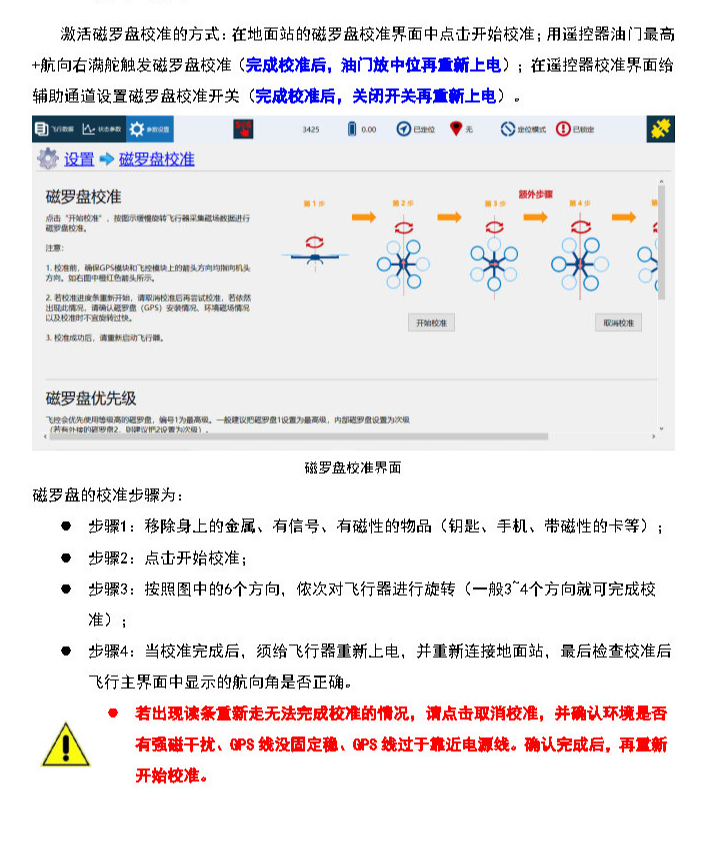 1、请注意磁干扰校准时必须拆卸桨叶;